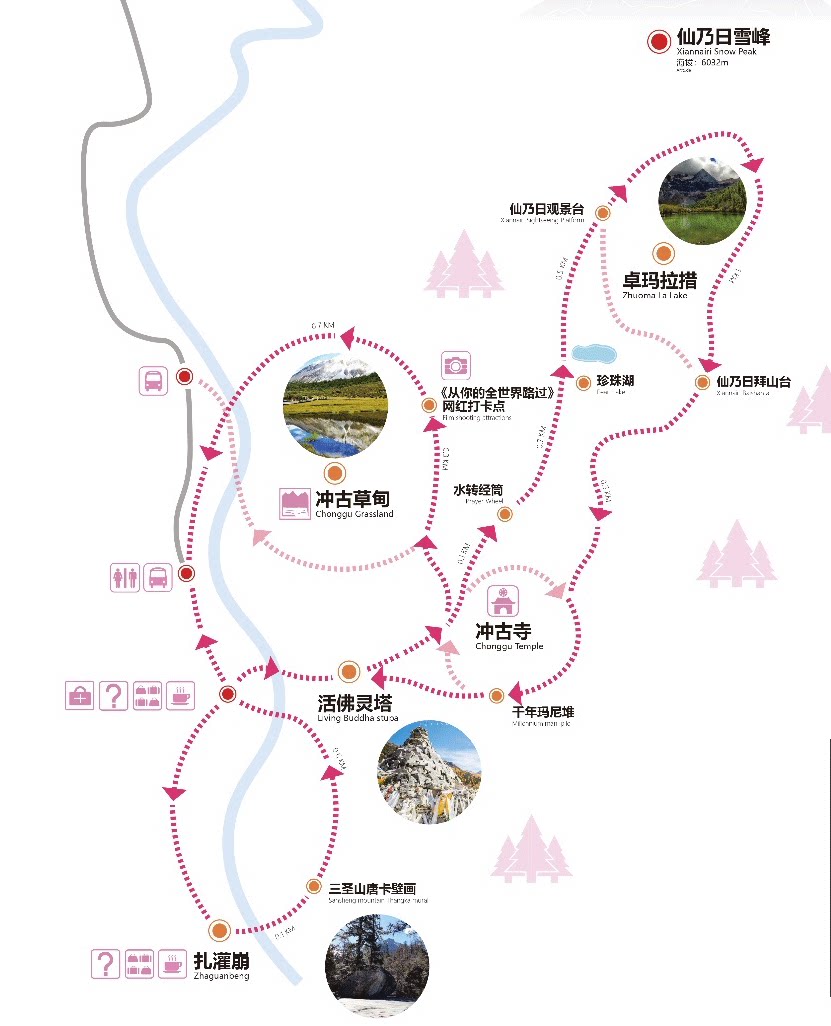 亚丁景区大众游览区域主要为观音慈悲线、文殊智慧线,沿途游览观景。金刚挑战线中的牛奶海、五色海区域海拔为4500米以上,氧气稀薄、天气多变,加之游览需全程徒步(从洛绒牛场出发,往返约10公里,徒步约5一6小时),个别游客高反严重,体验感差,为了您的健康和安全考虑,特别温馨提示您: