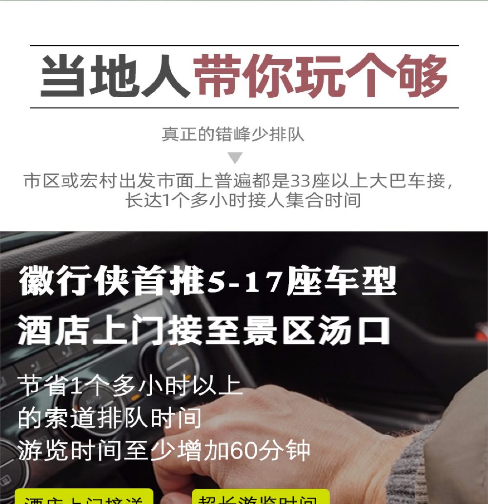 2023年11-12月每周三设为“黄山市景区免门票开放日”,开放日对提前有预约的游客免门票开放(仅指各景区的首道门票,不含景区内索道、游船、景交换乘等其他参观游览项目和二次消费项目),此产品套餐周三价格不含黄山风景区门票,请游客自行前往“黄山旅游官方平台”平台(通过领取消费券方式全额抵扣景区门票)提前预约黄山风景区门票,否则无法入园后果自负。
